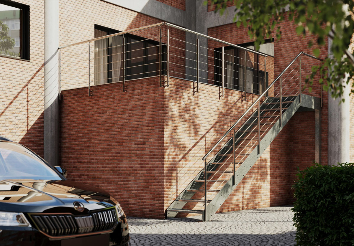Bočnicové kombinované exteriérové schodiště INDUSTRY.